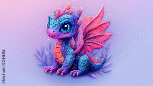 © arcapada, Fototapeta premium Cute dragon illustration, soft pastel colors