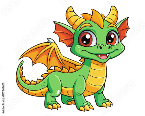 © Taras, Fototapeta premium Cute dragon sticker. Fantasy dino character. Cartoon comic monster. Funny dinosaur creature