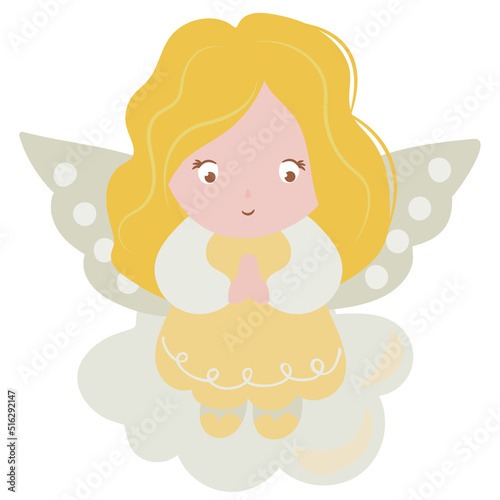 © Helga KOV, Fototapeta premium Cute drawn angel. White background, isolate. vector illustration.