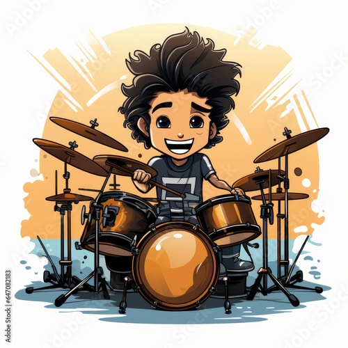 © Creda, Fototapeta premium Cute Drummer with Cartoon Style isolated on a white background