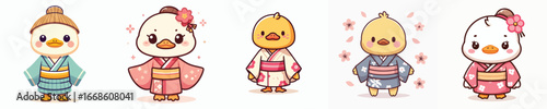 © sarah16blakeyxh2, Fototapeta premium cute duck vector in kimono costume