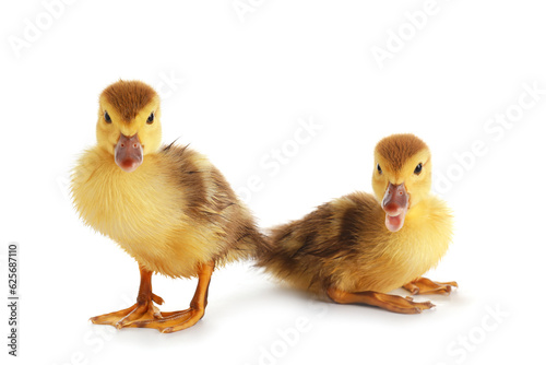 © Pixel-Shot, Fototapeta premium Cute ducklings on white background