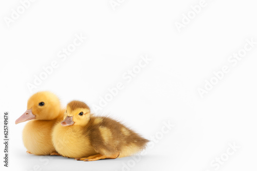 © Pixel-Shot, Fototapeta premium Cute ducklings on white background