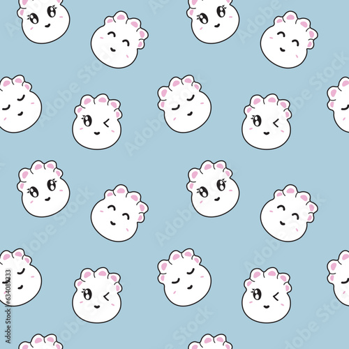 Naklejka premium Cute Dumpling Character Artwork Allover Seamless Pattern Design Artwork