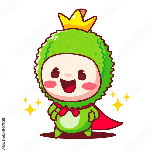 Fototapeta premium Cute Durian king logo cartoon icon logo illustration. Tropical Fruit Concept...