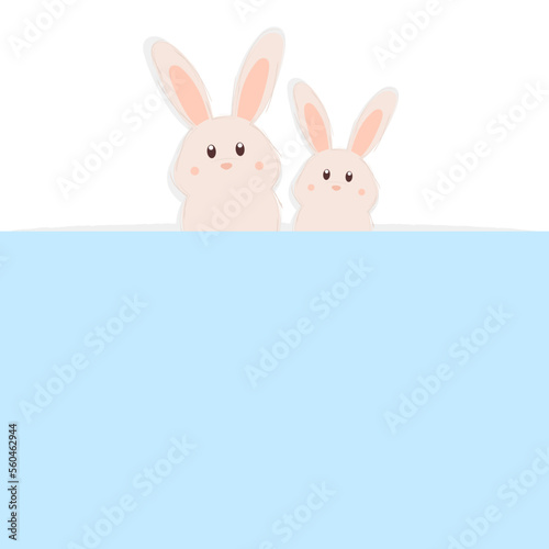 Fototapeta premium Cute Easter bunnies on a white and blue background