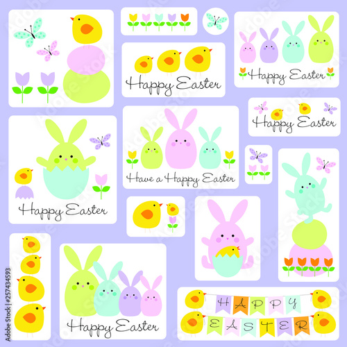© scrapster, Obraz premium cute easter bunny and chick graphics