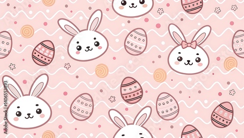 Obraz premium Cute Easter Bunny and Egg Seamless Pattern on Pink Background