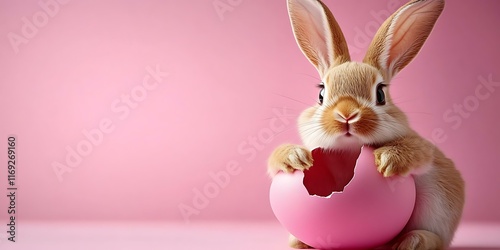 © Adobe Contributor, Obraz premium Cute Easter Bunny Holding a Pink Egg