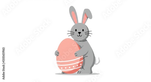 Fototapeta premium Cute easter bunny holding a pink egg with decorative patterns on white...