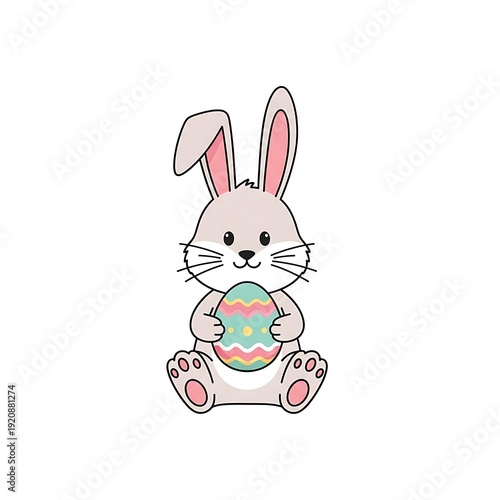 © Must. Husna Begum, Obraz premium Cute easter bunny holding decorated egg