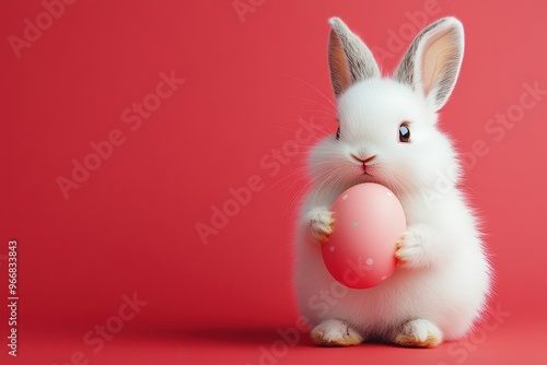 © Alienmarsh, Obraz premium Cute Easter Bunny Holding Pink Egg