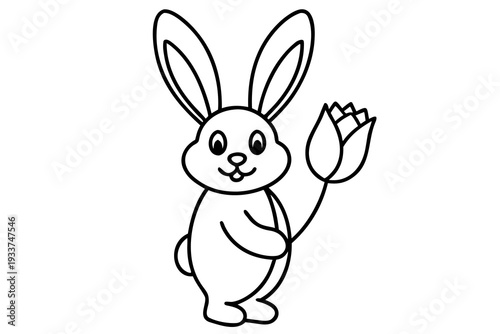 Obraz premium Cute Easter bunny holding tulip flower coloring page silhouette vector...
