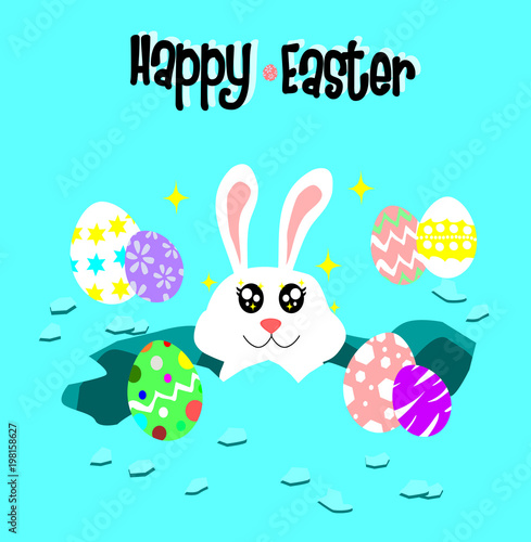 Fototapeta premium cute easter bunny in the hole with egg,rabbit with blue back ground ,animals vector.