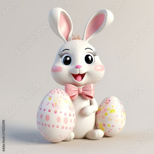 © Irina, Obraz premium Cute Easter bunny on a light background, 3D, Easter background