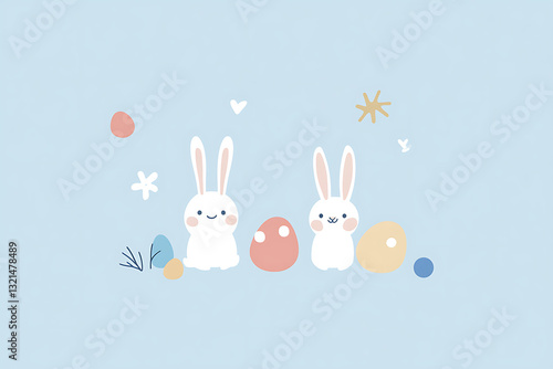 Fototapeta premium Cute Easter Bunny with Decorated Eggs – Pastel Cartoon Illustration