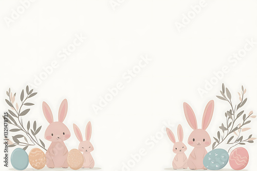 Fototapeta premium Cute Easter Bunny with Decorated Eggs – Pastel Cartoon Illustration