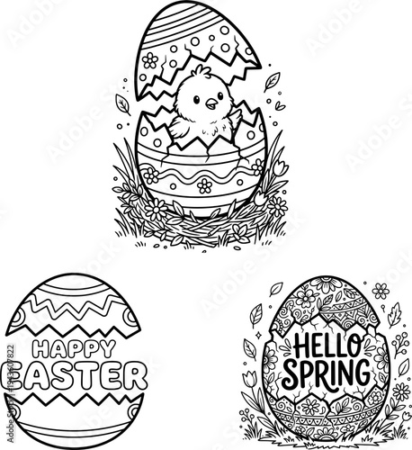 Fototapeta premium Cute Easter Chick Hatching and Spring Egg Coloring Set