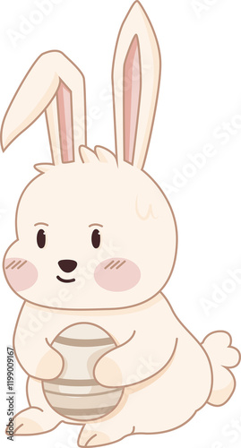Fototapeta premium Cute Easter rabbit bunny with egg, png file no background