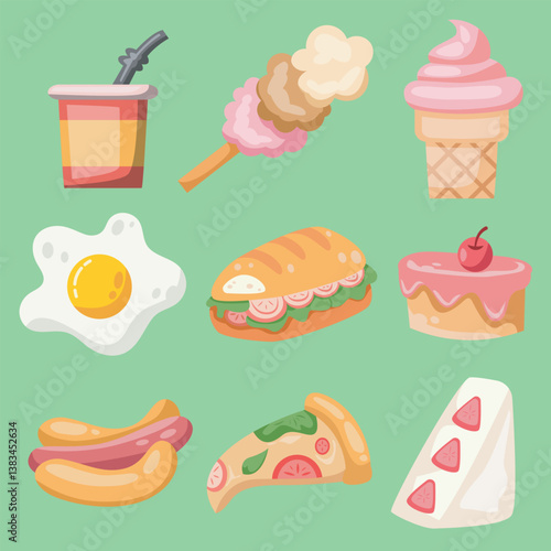 Fototapeta premium cute eating vector set. kawaii and delicious food icons