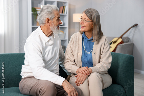 Obraz premium Cute elderly couple on sofa at home
