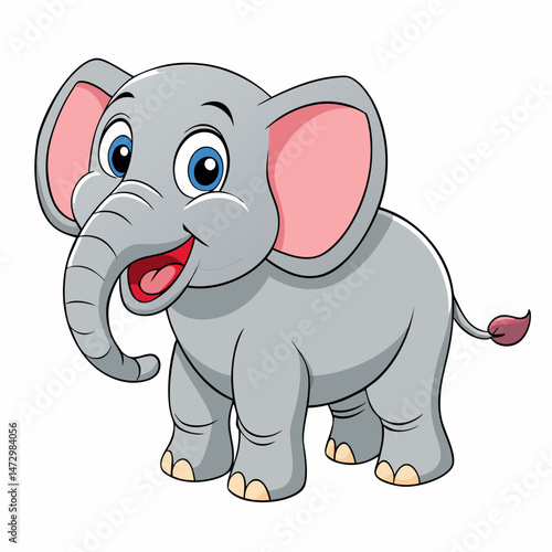 Naklejka premium Cute Elephant Cartoon: A charming illustration of a delightful baby elephant,...