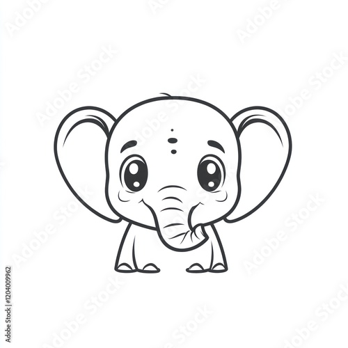Fototapeta premium Cute elephant cartoon drawing, simple line art, kids coloring page, for print or digital media