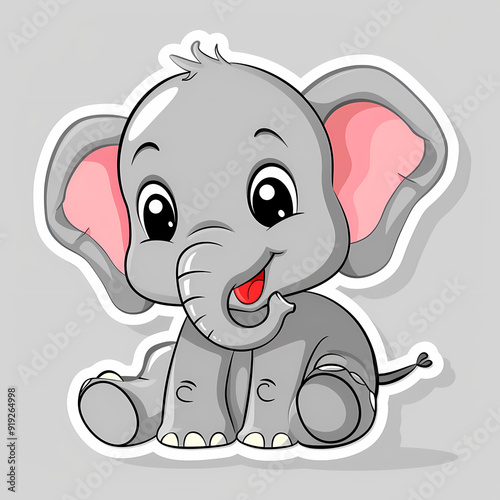 © Akharadat, Fototapeta premium Cute Elephant cartoon on a White Canvas Sticker,vector image
