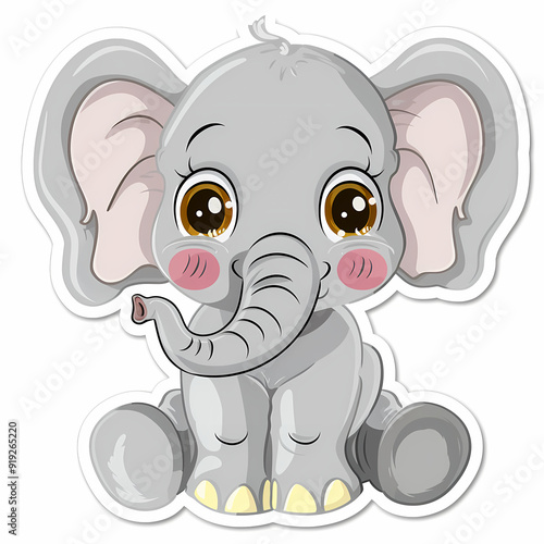© Akharadat, Fototapeta premium Cute Elephant cartoon on a White Canvas Sticker,vector image