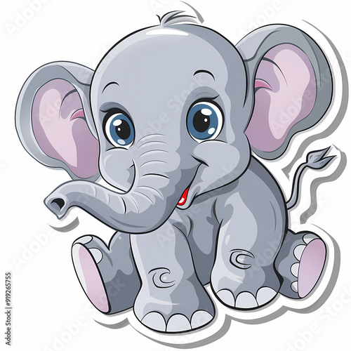© Akharadat, Fototapeta premium Cute Elephant cartoon on a White Canvas Sticker,vector image
