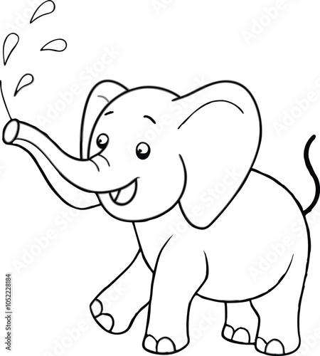 © Mamun, Fototapeta premium Cute Elephant Cartoon Outline Drawing Coloring Page