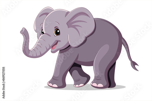 © MD REJAUL KARIM , Naklejka premium cute elephant cartoon walking, isolated on a white background, Flat style cartoon vector illustration. cute elephant walking happy. isolated cartoon animal illustration. Flat Logo of Vector Elephant.