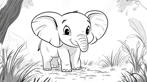 Obraz premium Cute Elephant Coloring Page for Kids
