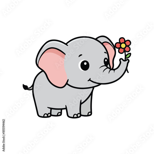 © Glorious monkey , Naklejka premium Cute Elephant Holding Flower Cartoon Illustration