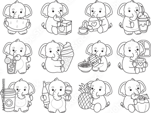 © Dian, Fototapeta premium Cute Elephant icon. Funny baby Elephant animal series stock illustration. Life of fluffy Elephant designs. Coloring pages of Funny baby Elephant.