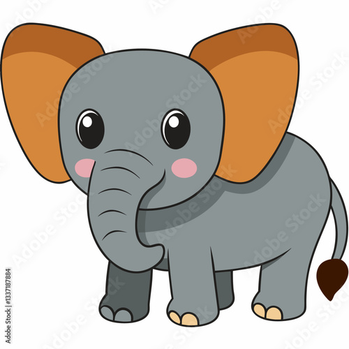 Naklejka premium Cute Elephant Illustration: A playful illustration of a baby elephant with big eyes, standing playfully, inviting joy and warmth.