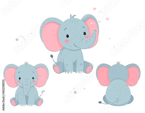 © graphic, Obraz premium Cute elephant illustrations, various views