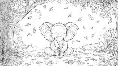 Fototapeta premium Cute Elephant in Autumn Setting Illustrating Relaxation and Calmness