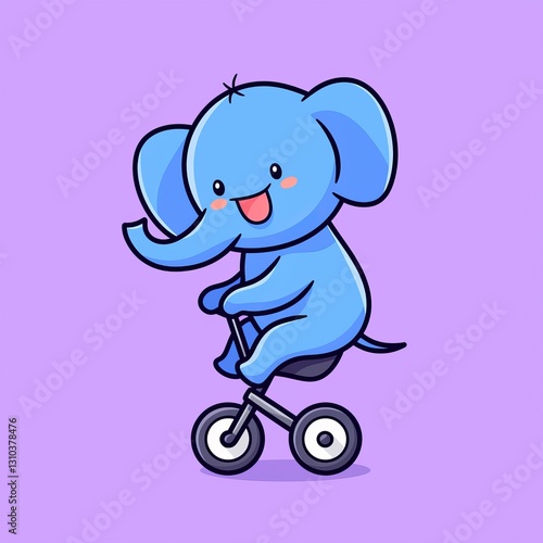© MUSTAKIM, Obraz premium Cute Elephant Rides Tricycle