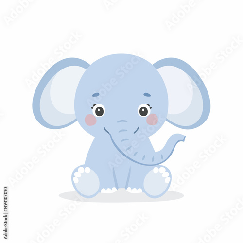 © Fajar, Fototapeta premium Cute Elephant Simple Vector Illustration – Minimal Flat Cartoon Animal Design for Kids and Decor Use