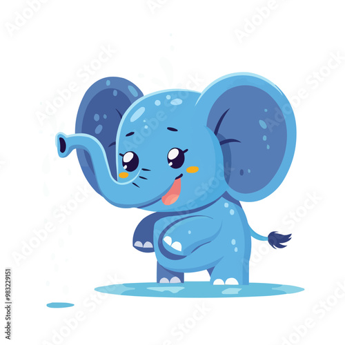 Obraz premium Cute elephant spraying water with its trunk, adorable and fun, vector illustration for t-shirt, flat style.