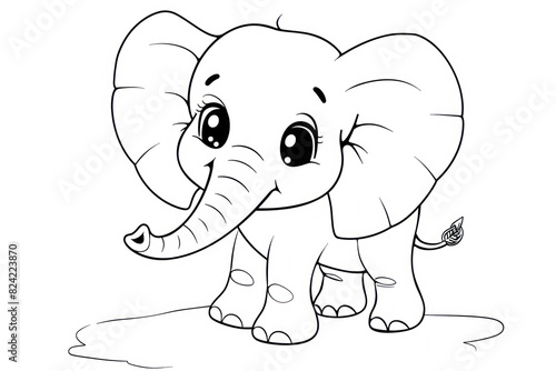 © Belho Med, Fototapeta premium cute elephant with chibi style vector illustration in black and white