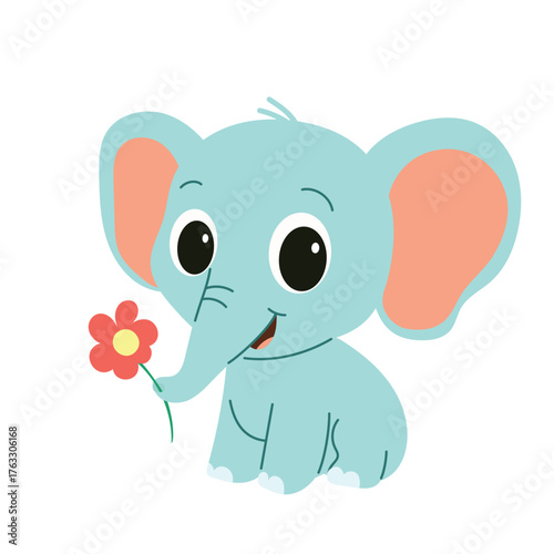 © clelia-clelia, Naklejka premium Cute Elephant with Flowers Isolated on Transparent Background.