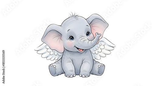 © Rafael, Naklejka premium Cute Elephant with Wings: This adorable illustration shows a charming elephant with delicate wings, bringing a touch of fantasy.
