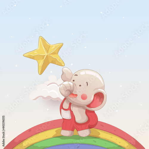 Fototapeta premium cute elephants trying to catch a star. vector hand drawn cartoon art style