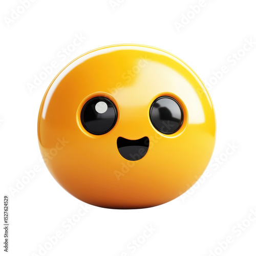 © HASSAN, Fototapeta premium Cute Emoji 3D Rendering with Glossy Surface Happy Face with Big Eyes and on transparent background