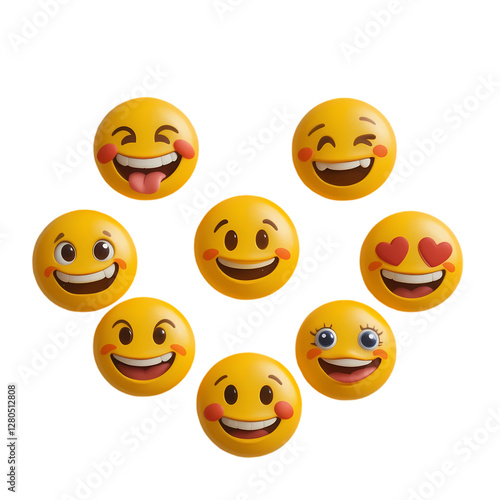 Fototapeta premium Cute Emoji Faces: Smiley, Winky, Heart & More isolated on transparent background