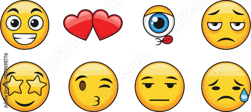 Obraz premium Cute Emoji Faces Vector Set with Love, Sad, Wink and Funny Expressions