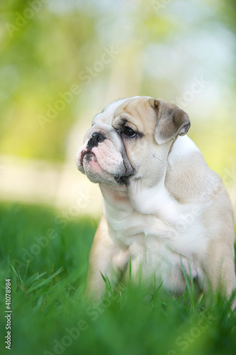 © Tatiana Katsai, Obraz premium Cute english bulldog puppy outdoors