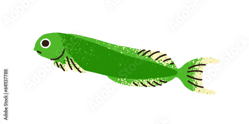 Fototapeta premium Cute exotic fish. Tropical aquarium water animal swimming. Sea marine small little species of green color. Ornamental fauna. Flat graphic vector illustration isolated on white background